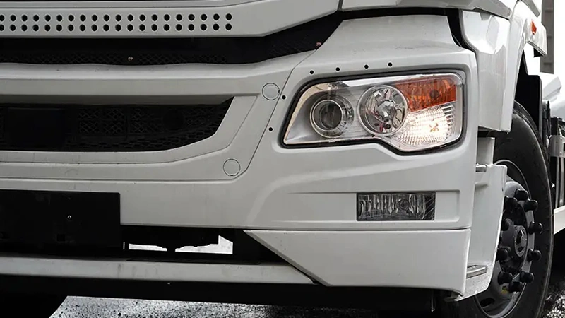 استفاده از چراغهای روشنایی روز DRL و مهشکن جلو و عقب، ایمنی دید را در شرایط کم نور بهبود میدهد. ورودی کابین، پلهها و دستگیرهها به گونهای طراحی شدهاند که راننده به راحتی بتواند در شرایط گلآلود و نامساعد وارد کابین شود. در کل باید گفت ظاهر این کمپرسی بیشتر بر کاربرد و دوام متمرکز است تا جذابیت بصری.