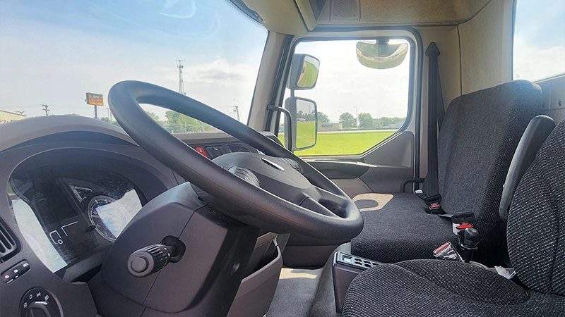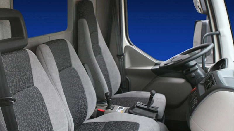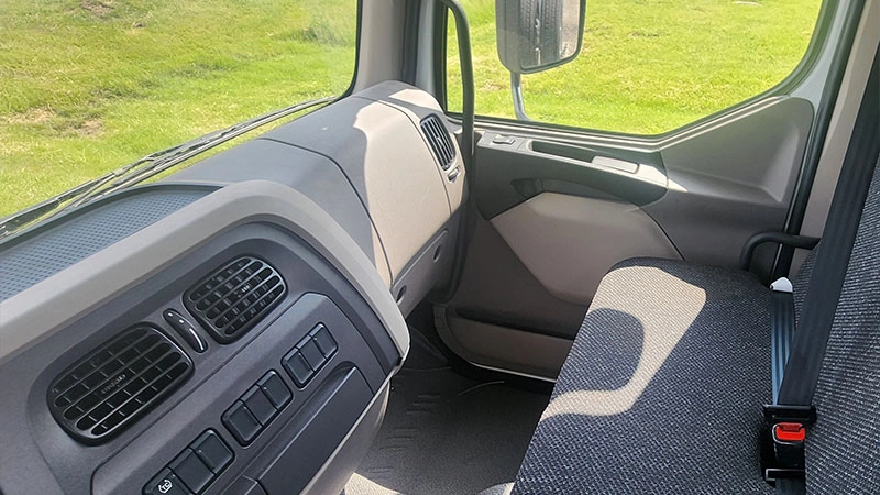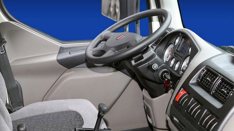 | قابلیتها و ویژگیها | صندلی راننده با تعلیق بادی و تنظیم چندجهته – طراحی کابین جلو برای مانورپذیری بالا – کف صاف کابین برای حرکت آسان – امکان انتخاب فاصله محوری متنوع – قابلیت دسترسی آسان به بخشهای سرویس و نگهداری. |