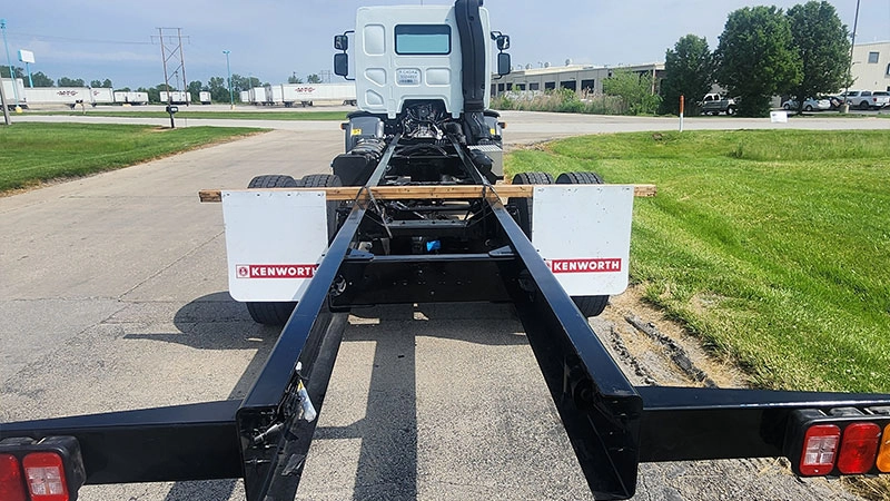 شاسی و سیستم تعلیق این خودرو نیز با استفاده از متریال مستحکم و کارآمد ساخته شده که قادر است بهخوبی ضربهها و شوکهای ناشی از ناهمواریها را جذب کند، علاوهبر اینکه میتواند بارهای مختلف با ظرفیتهای گوناگون را نیز بهراحتی حمل کند. در بخش سیستم تعلیق، محورهای جلوی این کامیون به سیستم فنر پارابولیک در جلو و تعلیق مکانیکی یا بادی از برندهای REYCO و HENDRICKSON مجهز شدهاند. ظرفیت این محورها به ترتیب برابر با ۴.۵ و ۷.۲ تن است.