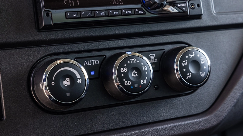 فضای داخلی T380 ترکیبی از سادگی، ارگونومی و فناوری است. کابین با عرض ۲.۱ متر فضای کافی برای راننده و دو سرنشین دیگر فراهم میکند. صندلی راننده با قابلیت تنظیم دقیق و پشتی بلند، برای ساعتهای کاری طولانی طراحی شده و کنسول مرکزی بهگونهای چیده شده که کنترل تجهیزات بهراحتی انجام شود. نمایشگر دیجیتال، تهویه مطبوع خودکار، سیستم صوتی پیشرفته و آینههای برقی گرمشونده، فضای کاری را به محیطی راحت و حرفهای تبدیل میکنند. این طراحی داخلی باعث میشود خستگی رانندگی در مسیرهای شهری به حداقل برسد.