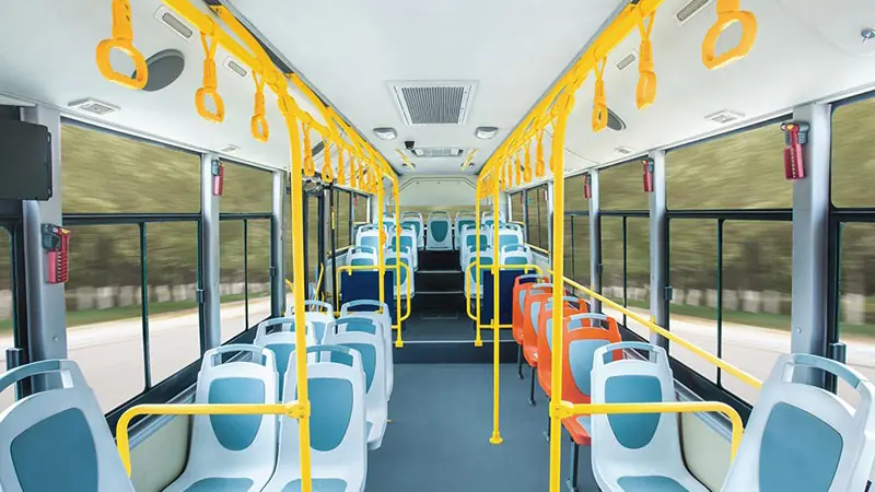طراحی داخلی اتوبوس King Long 10m 35 seats Diesel با در نظر گرفتن جریان حرکت مسافران و جانمایی مناسب صندلیها انجام شده است. صندلیهای ارگونومیک و فضای روشن داخلی، تجربه مطلوبی را برای شهروندان در زمان جابهجاییهای روزانه رقم میزند.