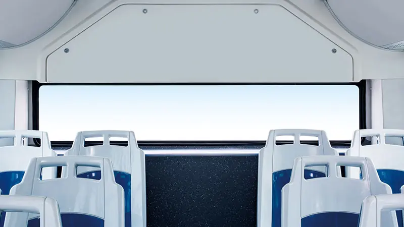 نمایشگرهای تاشو نیز از دیگر امکانات کاربردی اتوبوس King Long 10m 35 seats Diesel هستند که اطلاعرسانی موثر درون کابین را تسهیل میکنند. وجود شیشههای سکوریت جانبی نیز علاوه بر ارتقا ایمنی، در بهبود نورگیری و دید بصری نقش مؤثری دارد.