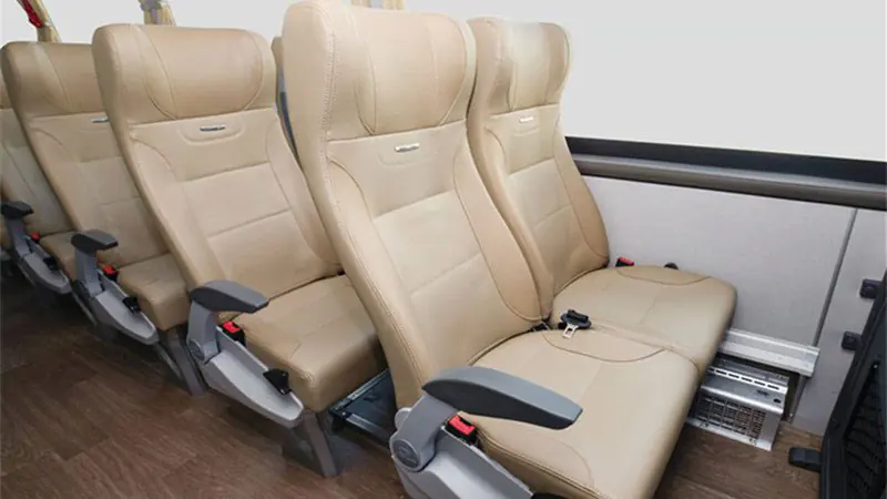 اتوبوس King Long 11M 51 Seats Coach با درهای آلومینیومی که بهصورت ریموت کنترل و رو به بیرون باز میشوند، ایمنی و سهولت ورود و خروج را افزایش داده است. این مدل همچنین به سیستم تهویه مطبوع، روشنایی داخلی مطلوب و صندلیهای راحت مجهز است که زمینه را برای راحتی حداکثری سرنشینان آماده کردهاند.