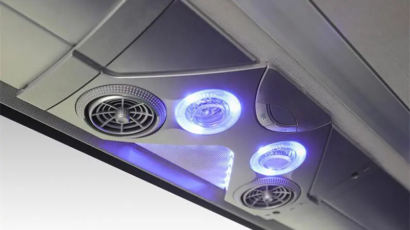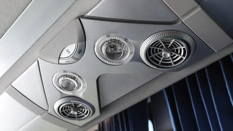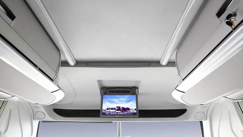 طراحی فضای داخلی اتوبوس King Long 12-13m 59/63 seats Large Luxury Coach به نحوی است که علاوه بر زیبایی، تا حد زیادی کارکردی نیز بوده و فضای مناسبی برای رفتوآمد مسافران، نصب سیستمهای تهویه و تجهیزات نورپردازی فراهم میسازد. ارتفاع مناسب سقف نیز حس باز بودن فضا را افزایش میدهد.
