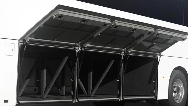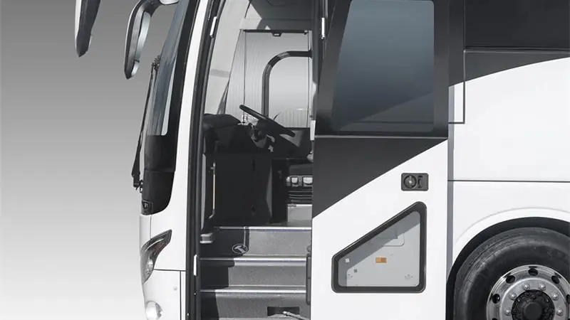 اتوبوس King Long 12-13m 59/63 seats Large Luxury Coach از نظر طراحی بیرونی، نمایی مدرن، پویا و هماهنگ با استانداردهای زیباییشناسی جهانی دارد. فرم آیرودینامیک بدنه، نهتنها ظاهر آن را بهمراتب جذابتر کرده بلکه به کاهش مصرف سوخت نیز کمک میکند.