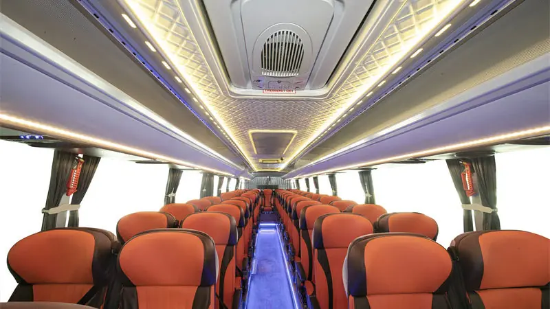 اتوبوس King Long 12m Coach با ظرفیت حمل ۵۵ مسافر، فضای داخلی راحتی را برای سفرهای طولانی فراهم کرده است که حتی در جادههای بیابانی و سخت نیز سطح بالایی از آسایش را برای مسافران تأمین میکند. صندلیهای بزرگ با پشتی بلند، زیرپایی و تکیهگاه مناسب، راحتی فیزیکی سرنشینان را در طول مسیر تضمین میکنند.