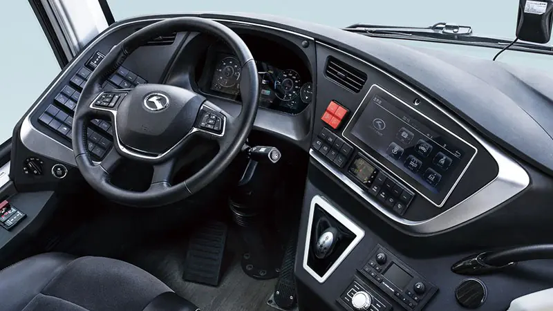 در کابین راننده، فضای مناسب، امکان تنظیم صندلی و دسترسی به کلیدهای کنترلی در نظر گرفته شده است. اتوبوس King Long Long Distance Large Coach 57/61 Seats با طراحی درست و دقیق فضای داخلی، شرایط مناسبی برای مسافران و راننده فراهم میکند تا در سفرهای چند ساعته، کمتر خسته شوند.