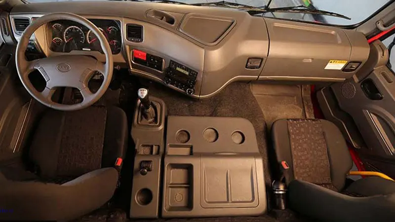 در داخل کابین نیز یک طراحی ارگونومیک را شاهد هستیم، طراحی داشبورد با خطوط منحنی دسترسپذیری آن را بالاتر برده است. همچنین وجود صندلی بادی با قابلیت تنظیم نیز باعث میشود آسایش راننده در مسیر تامین شود.