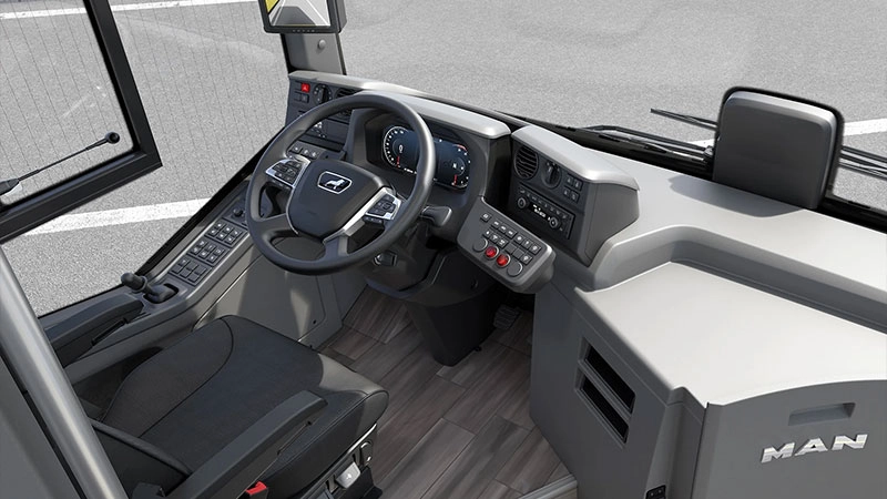 امکانات و آپشن‌هاسیستم خاموش و روشن اتوماتیک موتور (Start-Stop System) – سیستم مانیتورینگ هوشمند – سیستم ترمز اضطراری کمکی(EBA) – سامانه دستیار تغییر خط – آینه دیجیتال MAN OptiView – درگاه USB در بخش مسافران – سیستم روشنایی مستقل برای هر صندلی – صندلی راننده بهینه و با تنظیمات چندگانه – سیستم هشدار برخورد