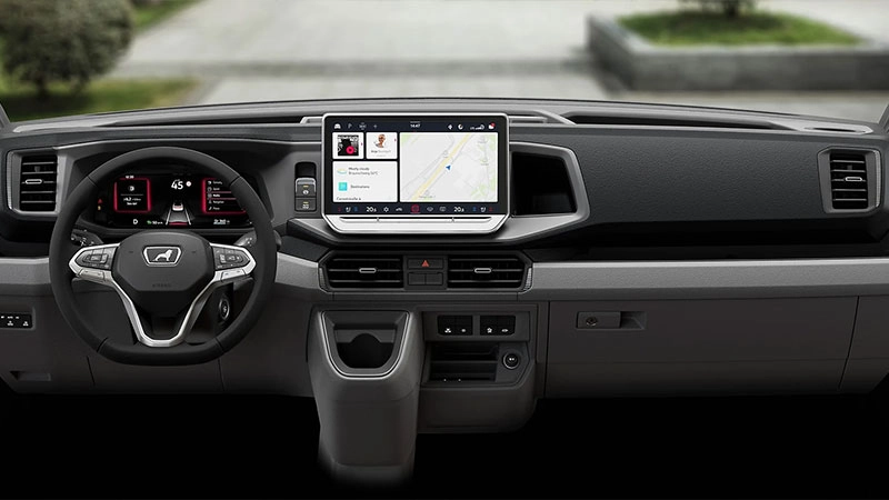 کابین این خودرو به نحوی طراحی شده که تمامی کلیدها در دسترس راننده باشند و فضای کافی برای انجام کارکردهای گوناگون فراهم گردد. جزئیات دقیقی چون فرم صندلیها، کیفیت پوششهای داخلی و نورپردازی هوشمند، جلوهای از دقت و توجه به نیازهای واقعی راننده را در ون MAN TGE panel منعکس میکند. علاوه بر این، طراحی ارگونومیک فضای داخلی نیز حمل مسافر و جابهجایی کالاهای مختلف را با سهولت بیشتری ممکن ساخته است.