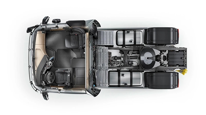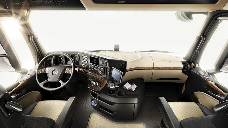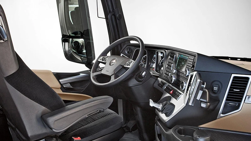 کیفیت ساخت داشبورد و استفاده از متریال مرغوب حس لوکس بودن را منتقل میکند و محفظههای متعدد فضای کافی برای نگهداری وسایل سفرهای طولانی فراهم کردهاند. این ترکیب راحتی و طراحی هوشمندانه، آکتروس 1851 را به یکی از بهترین کابینهای کلاس خود تبدیل کرده است.