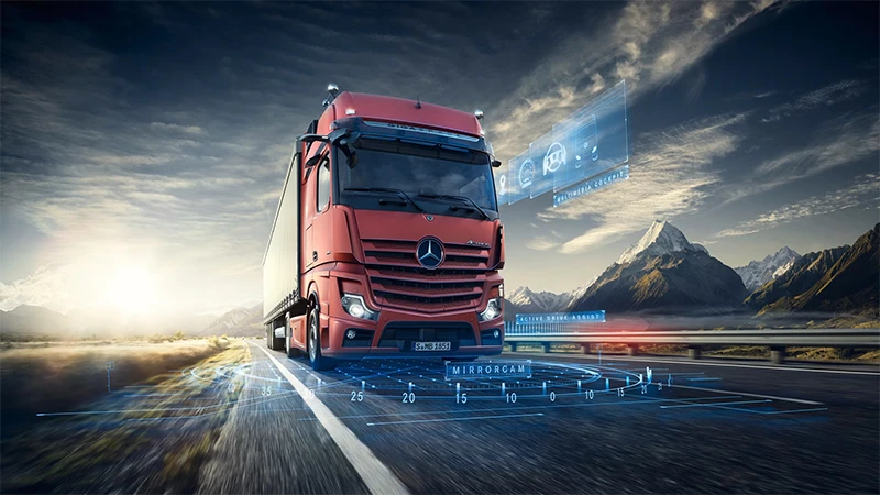 مرسدس بنز آکتروس 1851 مجموعهای از فناوریهای پیشرفته را در کنار امکانات رفاهی مدرن ارائه میدهد که آن را از بسیاری از رقبا متمایز میکند. یکی از مهمترین ویژگیها سیستم Driver Assist است که شامل ترمز اضطراری خودکار، هشدار خروج از خط، پایش فاصله ایمن و کنترل پایداری الکترونیکی است.