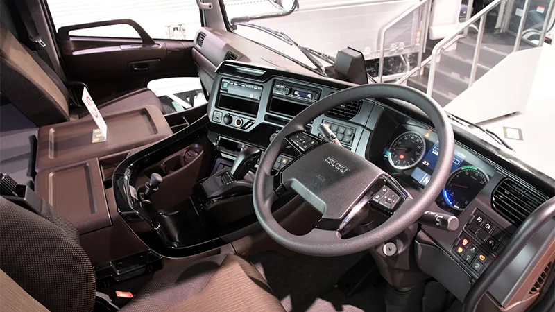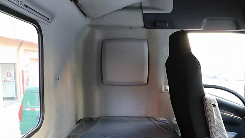 کابین کشنده ایسوزو گیگا ۴۶۰ چینی برای رانندگانی طراحی شده که ساعتهای طولانی در مسیرهای بینشهری فعالیت میکنند. درون کابین، طراحی ساده اما کاربردی را میبینیم که تمرکز اصلی آن بر راحتی راننده و دسترسی سریع به ادوات کنترلی است. صندلی راننده از نوع بادی با تعلیق پنوماتیکی است تا خستگی در مسیرهای طولانی کاهش پیدا کند.