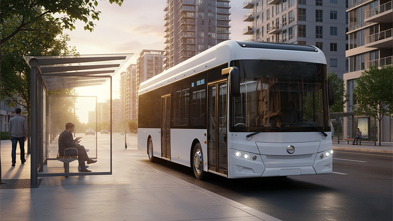 | تجهیزات و آپشنها | ظرفیت ۳۳ صندلی ثابت بههمراه فضای ایستاده، صندلیهای ارگونومیک با فوم تزریقی و روکش ضدخش، تهویه مطبوع قدرتمند Thermal King CS1000 با گردش یکنواخت هوا، نورپردازی داخلی LED کممصرف و با دوام، دسترسی آسان برای ویلچر و مسافران کمتحرک، بدنه آیرودینامیک با شاسی مقاوم و کف PVC ضد لغزش، درهای اتوماتیک جلو و عقب با سیستم پنوماتیکی، کابین راننده ایزوله با طراحی ارگونومیک و تهویه مستقل، نمایشگر دیجیتال مرکزی ACTIA 550 DAB+ برای کنترل سیستمها، شبکه ارتباط داخلی CAN BUS برای مدیریت هوشمند تجهیزات، پورتهای USB و Type-C برای راننده و بخش فنی، سیستم دوربین عقب و ارتباط بیسیم WiFi، سیستم اطلاعرسانی صوتی و تصویری مسافران با تأییدیه E-Mark، چراغهای LED بیرونی با نور یکنواخت، سیستم کنترل پایداری و لغزش ASR/EBS، سنسور فشار باد و کنترل ارتفاع بدنه، سیستم هشدار باز بودن دربها، ترمز پارک بادی ایمن و مقاوم. |