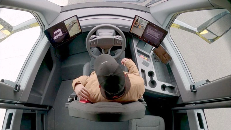 کابین این خودرو تکسرنشین است و برخلاف سایر کشندهها و کامیونها، صندلی راننده در مرکز کابین قرار دارد، همچنین به جای دکمهها، اهرمها، آمپرها و سایر اجزایی که در داشبورد خودروهای دیزلی میبینیم، این کشنده به دو مانیتور مجهز شده است که تمام سیستمهای مورد نیاز راننده را در اختیار او قرار میدهند. این مانیتورها در نقش آینه بغل، آینه نقطه کور، GPS، سرعتسنج، عیبیاب، سیستم مالتی مدیا و سایر سیستمهای حیاتی ظاهر میشوند.