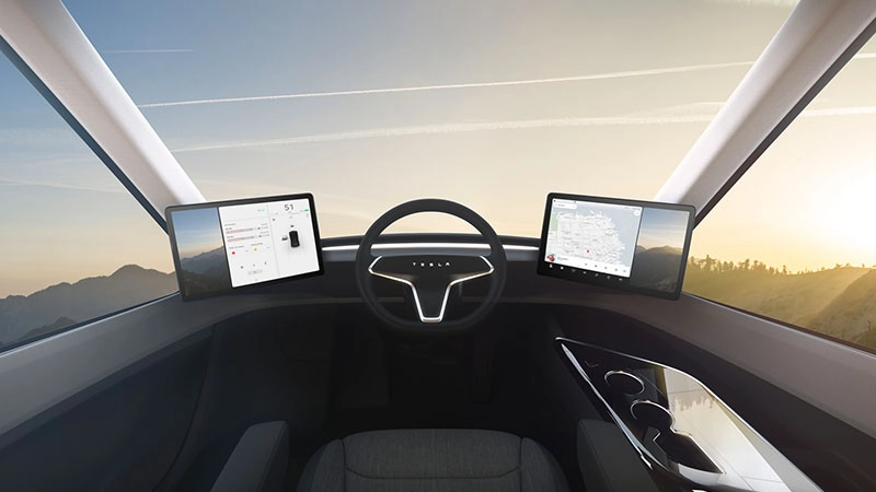 طراحی ظاهری کشنده تسلا Semi یک قدم فراتر از طراحی بهروز است، ظاهر این خودرو مستقیما از آینده آمده و الگوی طراحی خودروهای تجاری در آیندهای نزدیک است. این طراحی علاوهبر زیبایی، کاملا نیز آیرودینامیک است و به حرکت راحتتر خودرو در مسیرهای مختلف کمک میکند.