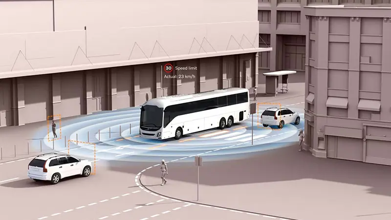 از دیگر ویژگیهای اتوبوس Volvo 7900 Electric میتوان به کمک به شروع حرکت در سربالایی و دوربین دید عقب اشاره کرد. این آپشنها رانندگی را آسانتر کرده و احتمال بروز خطا در مانورهای حساس را به میزان زیادی کاهش میدهند. وجود دوربین دید عقب مخصوصاً برای وسایل نقلیه عمومی که در داخل شهرها برای جابهجایی مسافران به کار میروند اهمیت بسیار زیادی دارد.